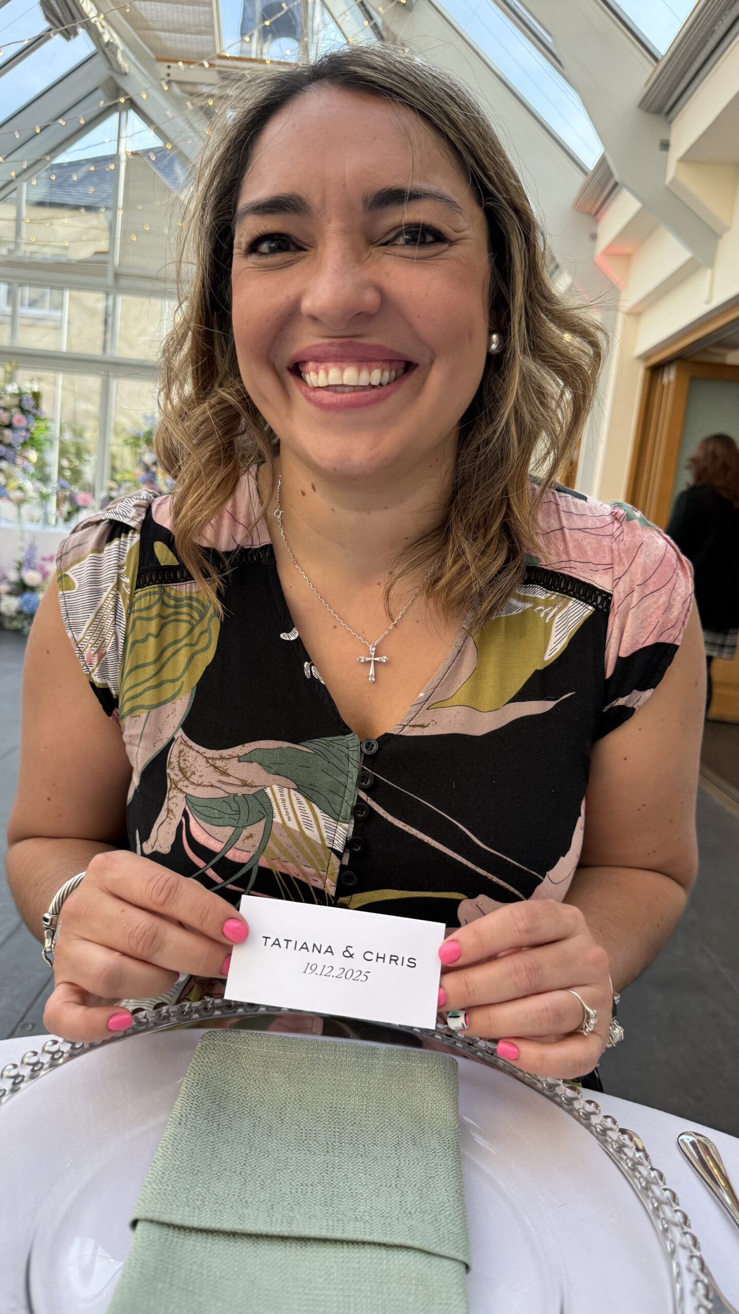 Yes, she was lateHe said "what a beautiful name to match such a beautiful smile"... so corny, we know! but that is Chris for you... Super romantic, corny and sweet. Meanwhile, Tati over here has a big heart but can be a little... forward, you know her.. but with a big big heart. So it all started on April 2015... we started talking and getting to know each other, Tati traveled to France, Colombia before getting back to the UK to have their first date... which for her.. it was just a 10 min at a Starbucks by the service stations. She phrased it "Lets not waste each others time, we would know if there is chemistry or not in the first 5 minutes, the other 5 just complementary and done" .. May 4th, 2015, sure came sooner than expected.. after a flight being delayed and guilt building inside (we mentioned Tati has a big heart)... she had to change those 10 minutes to a 3 hours, that Starbucks for a whole dinner... We had our first date at The Mills House in Hook, UK... Let me tell you.. they didn't have steak... or good wine.. And this is how it all got started...